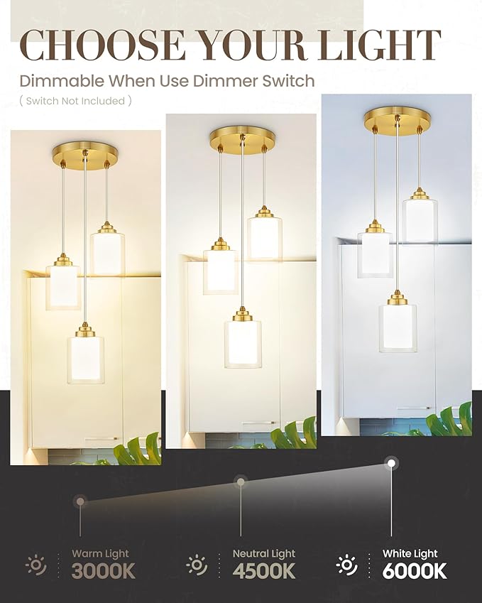 - Versatile Use:The hanging light fixtures ceiling with dual glass shade gently diffuses light, ideal for various areas such as kitchen islands, dining rooms, hallways, and more. The pendant lights kitchen island is a perfect choice for both lighting and home decoration.