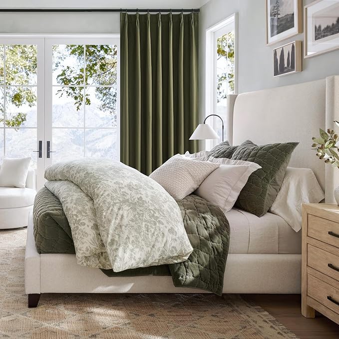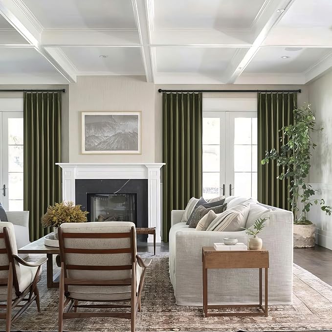 Topfinel Olive Green 102 Inches Long Custom Blackout Linen Curtains, Pinch Pleated Noise Cancelling Curtains with Pin Hooks for Traverse Rods, Viral Drapes 2 Panels for Living Room Master Bedroom