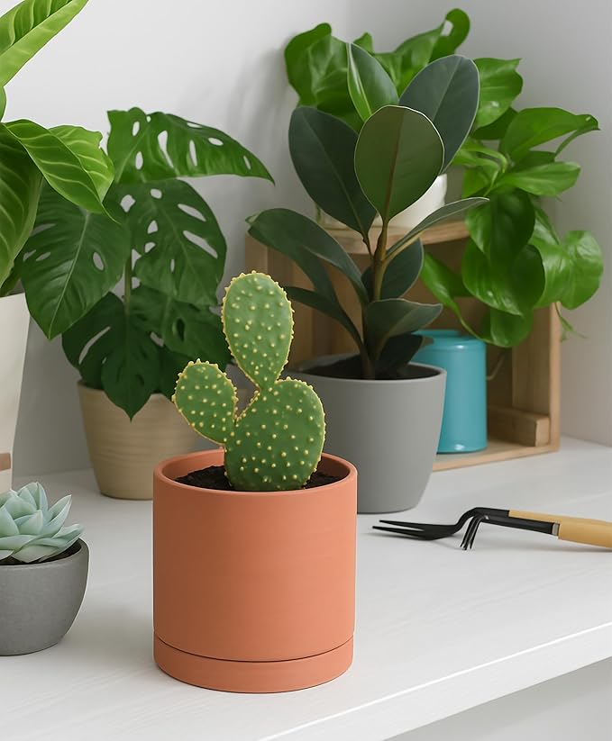 D'vine Dev Small Plus 5 Inch Terracotta Plant Pot with Drainage Hole and Saucer, Round Cylinder Planter Pot for Indoor Plants, 40-X-A-2