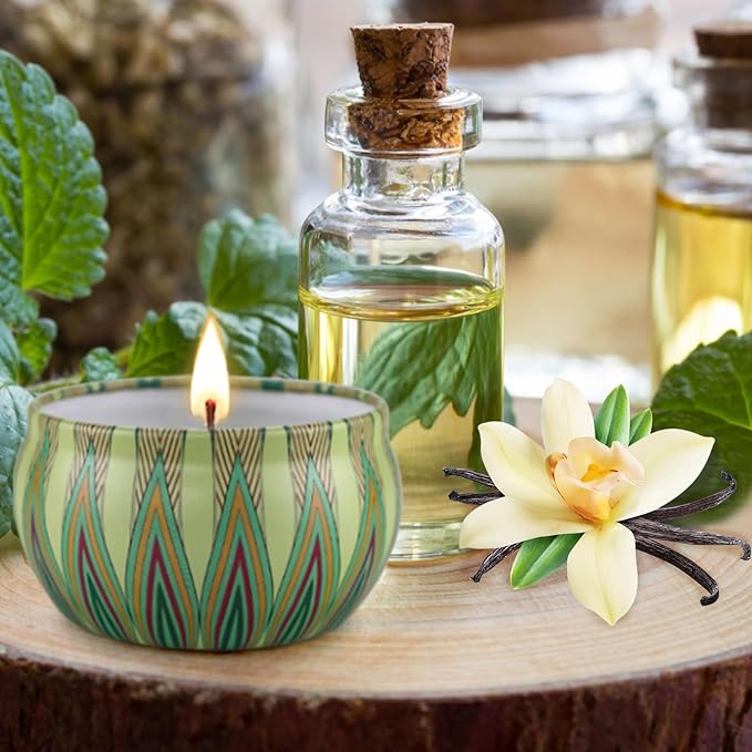 - Natural and Healthy: These candles are made from natural materials soy wax and essential oils, which burn cleaner than traditional paraffin wax, each 4.4OZ tin candle is designed to last, providing up to 35 hours of consistent, fragrant burn time. Enjoy a long-lasting aroma that fills your space with tranquility and peace.making them healthier for both people and the planet.