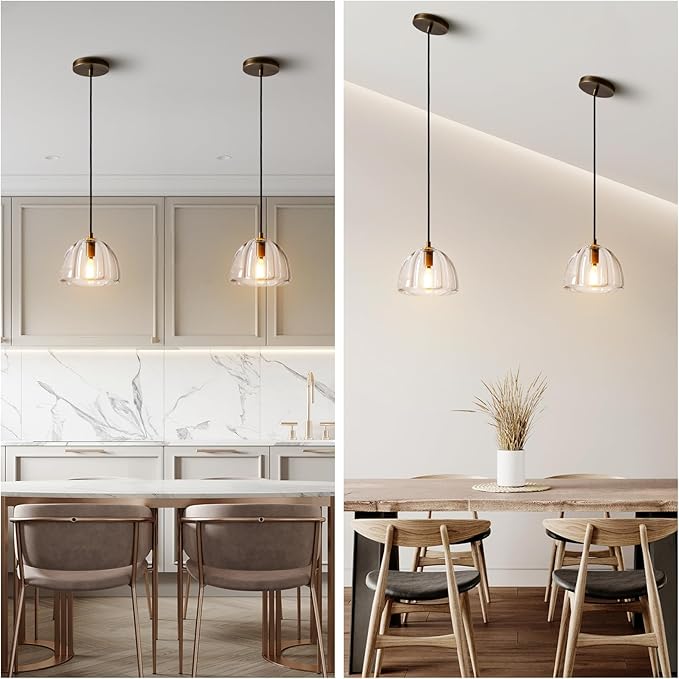 - Efficient Illumination with Included E12 Bulbs: Gold Pendant Light Fixtures Illuminate your surroundings with ease using the included E12 bulbs. Designed for efficiency and longevity, these bulbs provide ample lighting to brighten up your kitchen, farmhouse , or any desired space