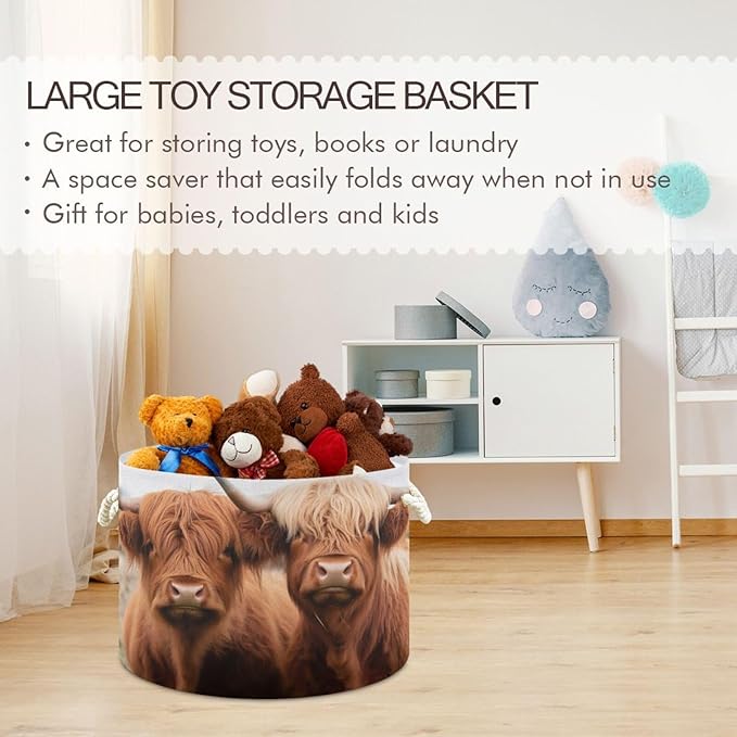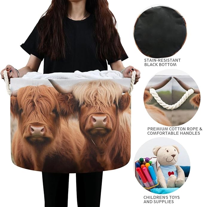 xigua Large Storage Basket Cotton Rope Basket Highland Cows Baby Laundry Basket for Blankets Toys Storage Basket Laundry Hamper