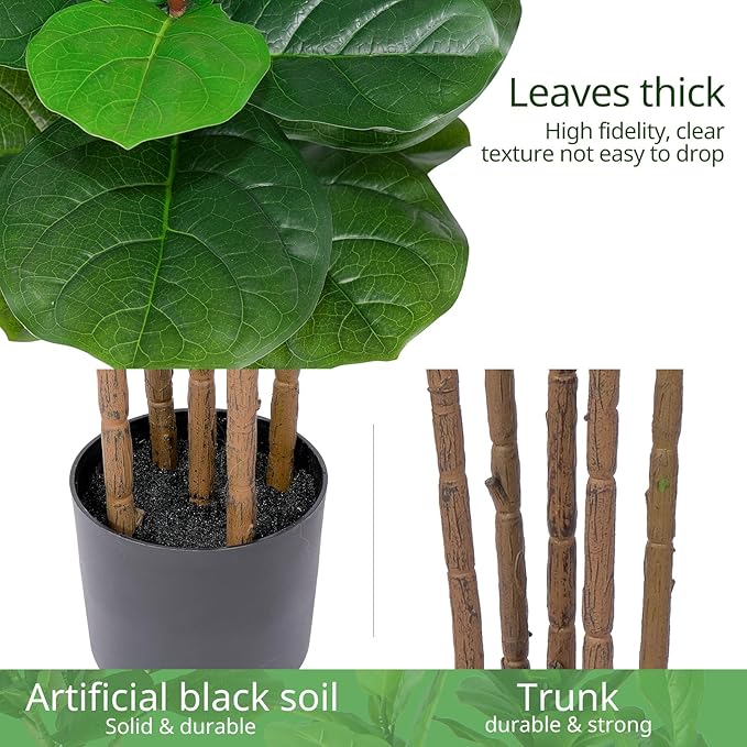 - Brighten Up Your Decor: We designed our fiddle leaf fig tree artificial decor to add a touch of refreshing and uplifting greenery to your home or office decor. It maintains its vibrant green color throughout the year in any season and complements the look of any modern home .