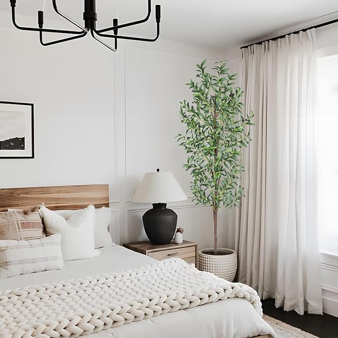 - 【Realistic Faux Tropical Plants】This 7Ft tall faux olive tree features 1048 Leaves and 40 Fruits crafted from silk fabric with delicate veins. The irregular trunks add to the authentic look, making this tree incredibly realistic.