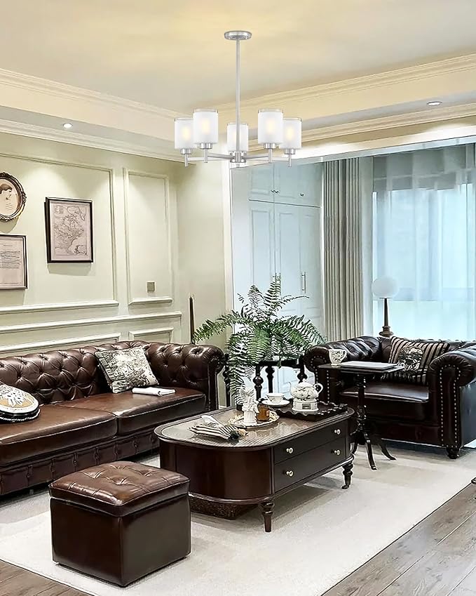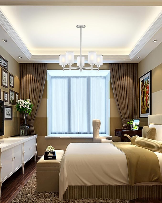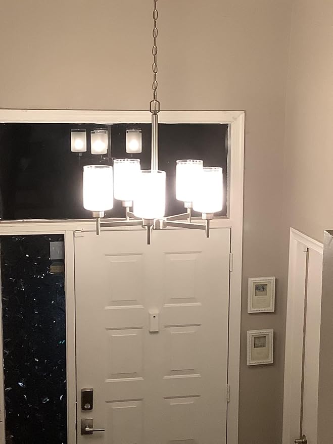 - 3. Glass Chandelier Light - Perfect for Your Space - Brushed Nickel Frosted glass Chandelier Light are suitable for a variety of spaces, from rustic chandeliers in the kitchen to dining rooms, bars, kitchen countertops, above sinks, living spaces next to bedrooms, dens, and bedrooms.