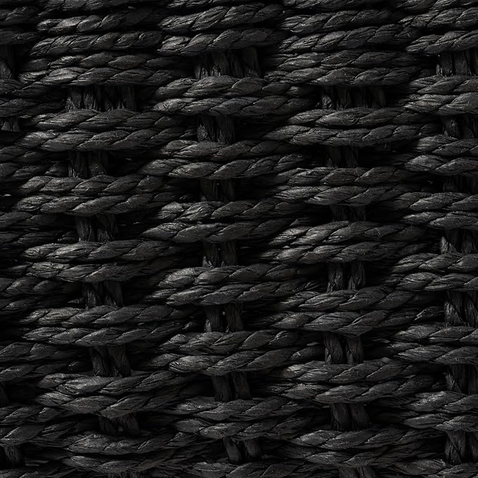 LA JOLIE MUSE Small Wicker Baskets for Organizing, Recycled Paper Rope Storage Basket Container Bins for Shelves Bathroom Cupboards Drawer, Decorative Square Basket Organizer Set of 3, Black