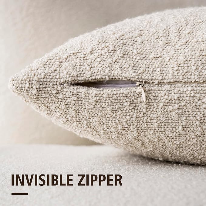 Foindtower Set of 2, Decorative Textured Boucle Throw Pillow Covers Accent Solid Pillow Cases Neutral Cozy Couch Cushion Case for Chair Sofa Bedroom Living Room Home Decor 24 x 24 Inch Ivory Beige