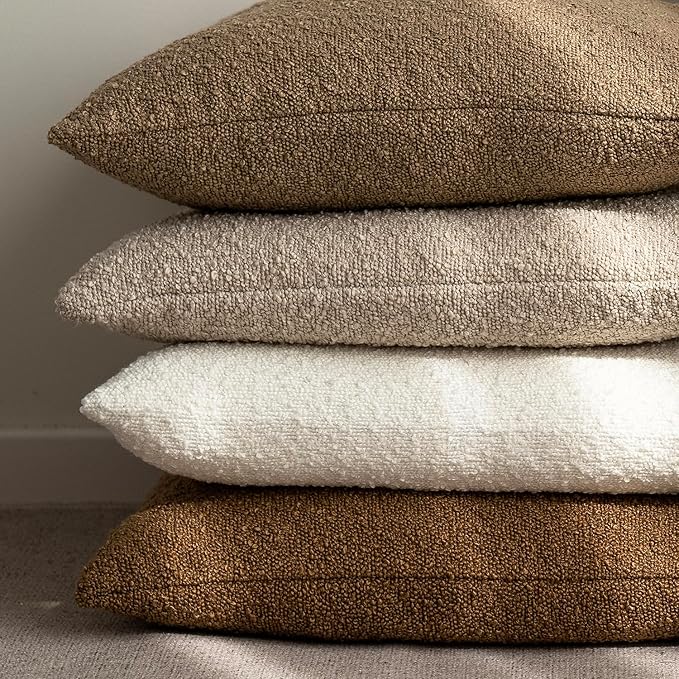 Foindtower Set of 2, Decorative Textured Boucle Throw Pillow Covers Accent Solid Pillow Cases Neutral Soft Cozy Couch Cushion Case for Chair Sofa Bedroom Living Room Home Decor 24 x 24 Inch White