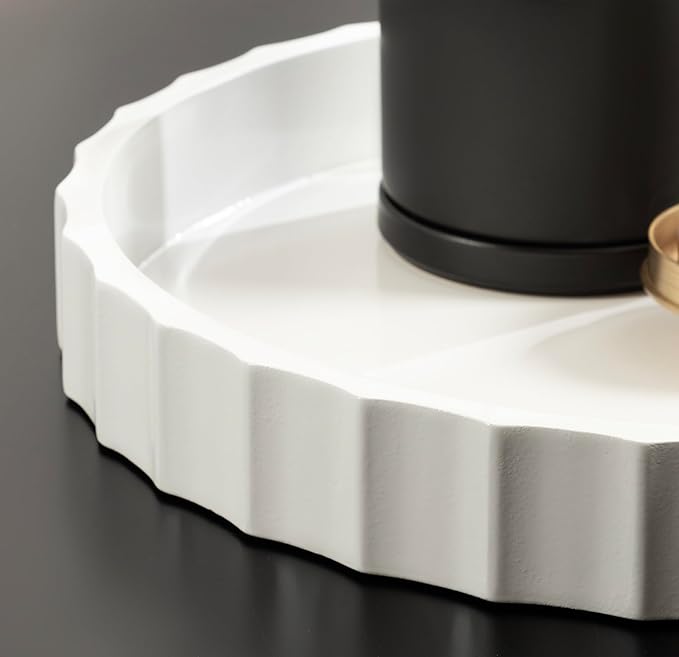 Kate and Laurel Lissi Decorative Round Tray with Wavy Design; 16 Inch Diameter; White; Modern Scalloped Circle Serving Tray for Coffee Table Ottoman; Dining Table; or Entryway Catch-All Tray