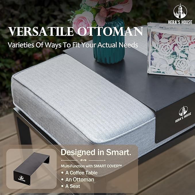 - 【E-COATING & POWDER-COATING TECHNIQUE】ALL the HERA'S HOUSE metal frame of conversation sets are processed by high-performance E-COATING and POWDER-COATING technique which provides extended protection against rust, scratches, rain, and UV harm. All weather resistant, anti-rust, easy to clean, no special care needed.