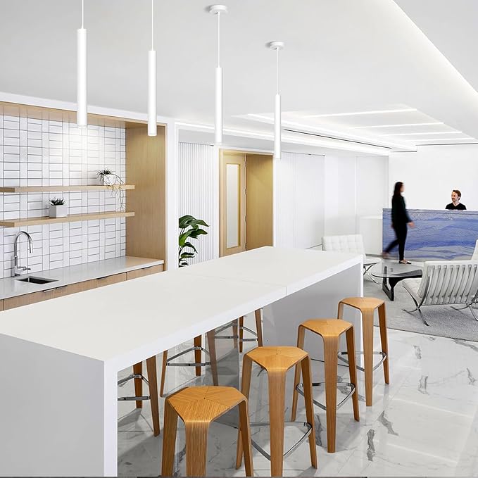 - 【Material & Size】Modern pendant lights kitchen island is made of high-quality, fast-dissipating aluminum body and highly breathable cylindrical acrylic, with a matte texture on the surface. The tube is 15.2 inches long and 1.5 inches in diameter, and the cover is 4.7 inches in diameter.