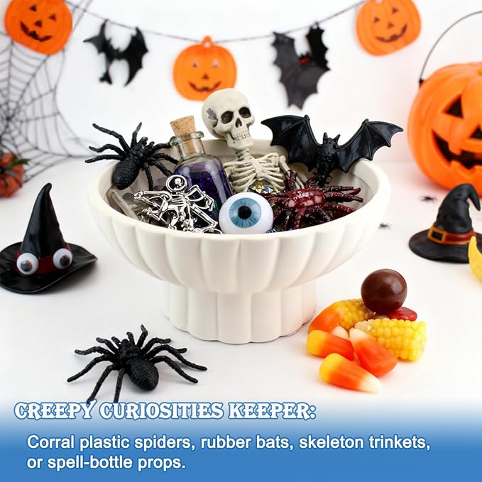 - Creepy Curiosities Keeper: Corral plastic spiders, rubber bats, skeleton trinkets, or spell-bottle props. The bowl’s shallow depth makes small items visible yet contained—ideal for entryway tables or mantels.