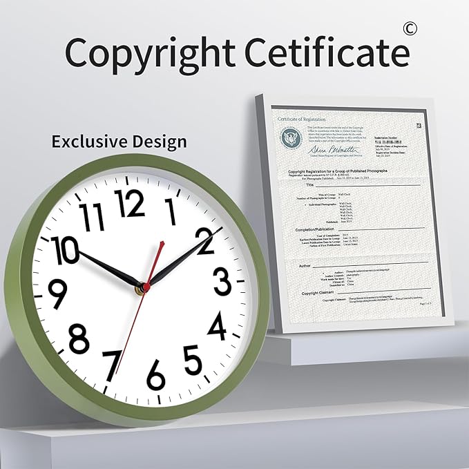 AKCISOT Wall Clock 10 Inch Silent Non-Ticking Modern Clocks Battery Operated - Analog Classic for Office, Home, Bathroom, Kitchen, Bedroom, School, Living Room(Olive Green)