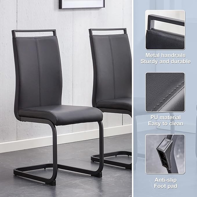 - Ergonomic Dining Chairs:Each dining chair is ergonomically designed to provide strong back support. The chairs are upholstered in high-quality PU leather, offering a luxurious appearance, a soft and skin-friendly feel, and easy cleaning