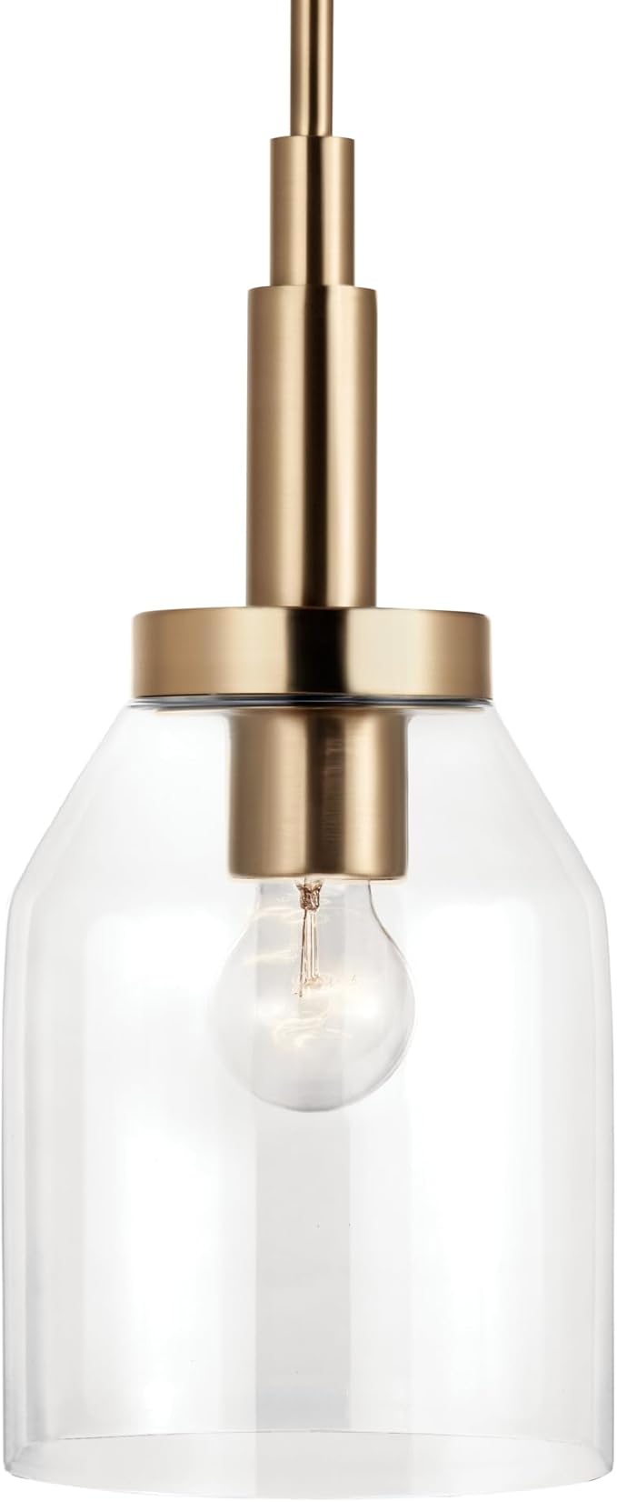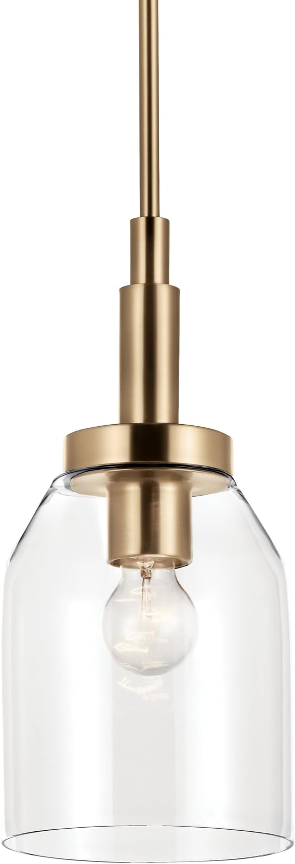 KICHLER Madden 1-Light Mini Pendant with Clear Glass in Champagne Bronze, Sloped Ceiling Compatible, for Game Room, Bar, Island, Billiards Table or Kitchen (15" x 7"), 52725CPZ