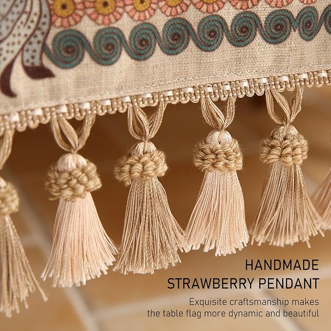 - Care Instructions:For table runners with tassels,hand washing or dry cleaning is recommended.Wash gently and air dry to maintain fabric quality.Table runners without tassels can be machine washed on a gentle cycle.After washing,they can be tumble dried on low heat; ironing is optional.Do not use bleach,as it may damage the fabric.
