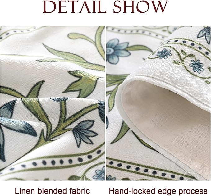 - Unique Design:Each table runner features patterns hand-drawn by our designers,showcasing exquisite details and rich textures for stunning visual appeal.The meticulous stitching ensures a smooth,wrinkle-resistant,and durable finish.With its fresh,rustic yet elegant style,it adds vibrancy and charm to your home decor