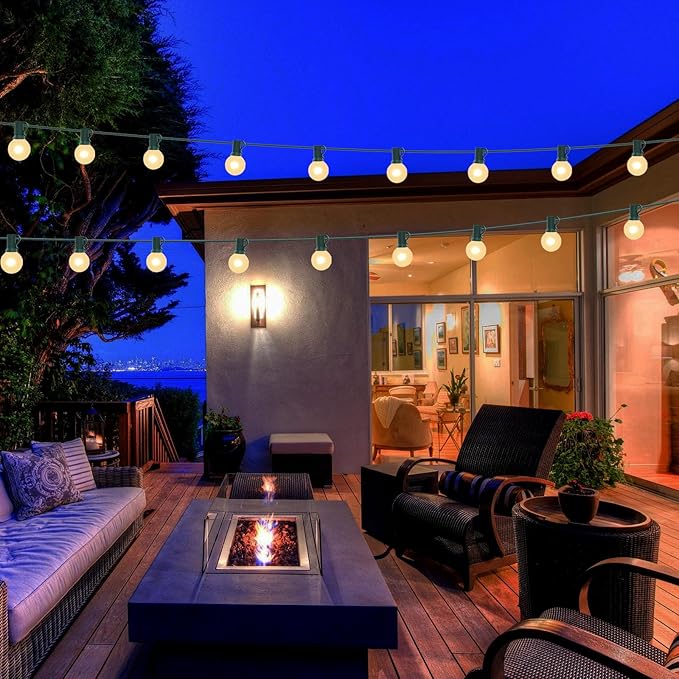 - Decorative Christmas light string: This G40 light string can be installed on the porch, patio, garden, backyard, and emits a warm white light that makes you feel very happy when gathering with your family and friends. Christmas Outdoor string lights are the perfect decoration for Christmas, Halloween, Thanksgiving, weddings, birthdays and other holiday parties, adding a romantic and warm atmosphere to your venue