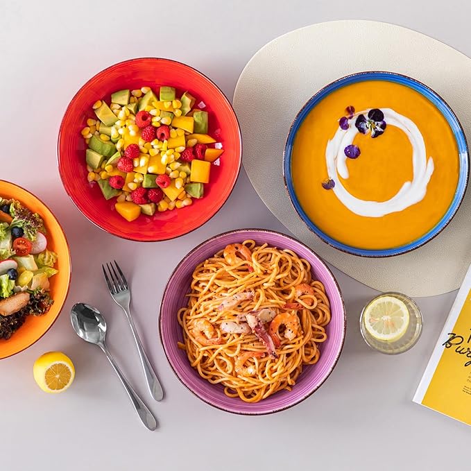 vancasso Bonita Pasta Bowls Set of 6, 50oz Large Salad Bowls for Kitchen, Corlorful Stoneware Serving Bowls Dishwasher & Microwave Safe