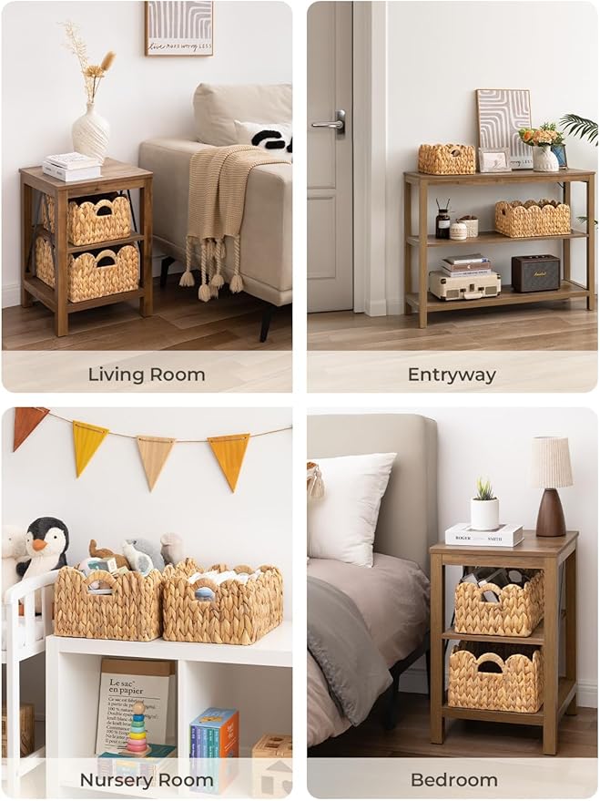- The scalloped wicker storage basket work well in living areas, bedrooms, food pantries, baby rooms, checkrooms, laundry rooms, and even hallways; the color is neutral and goes well with a variety of house designs. It can use to store magazines, books, toys, or anything else you need to tidy up.