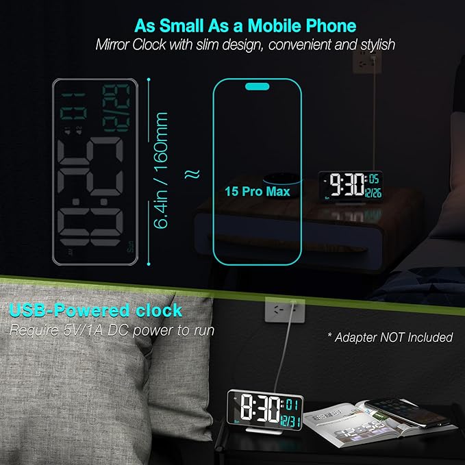 - [Plug-in USB-A Power Supply] This alarm clock requires a 5V/1A AC adapter (not included) to operate.