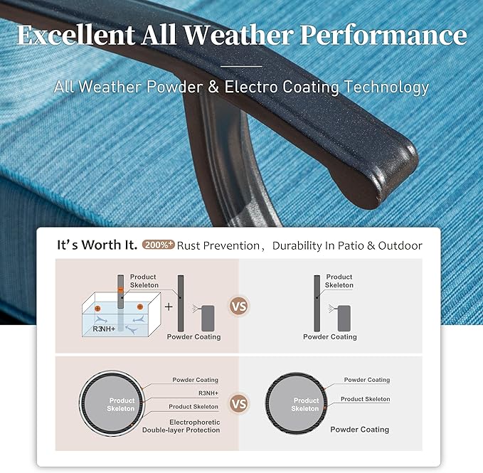 - ALL WEATHER HEAVY-DUTY FRAME: This metal backyard furniture set is made of high-performance E-COATING and POWDER-COATING dual rust prevention techniques that are All weather resistant, anti-rust, and easy to clean, with no special care needed. That patio conversation set has a heavy-duty wrought iron metal frame, The single chairs could support up to 350 lbs weight and the 3-seater sofa supports 900 lbs