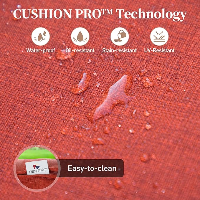 - ADVANCED CUSHION FABRIC TECH: Experience the happiness of easy maintenance with the SUNSHINE VALLEY patio conversation set. The fabric of this patio furniture set is made with CUSHION PRO technology. It has excellent waterproof, oil-proof, and stain-resistant properties making the dirt easily wiped down. It can really meet your outdoor leisure needs