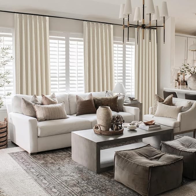 Topfinel Extra Long Total Blackout Cream Linen Curtains 108 Inches Long for Large Window with Hooks Rings, Pinch Pleated Cold Blocking Acoustic Heavy Ivory Track Tall Curtains 2 Panels 9 FT Beige Tan