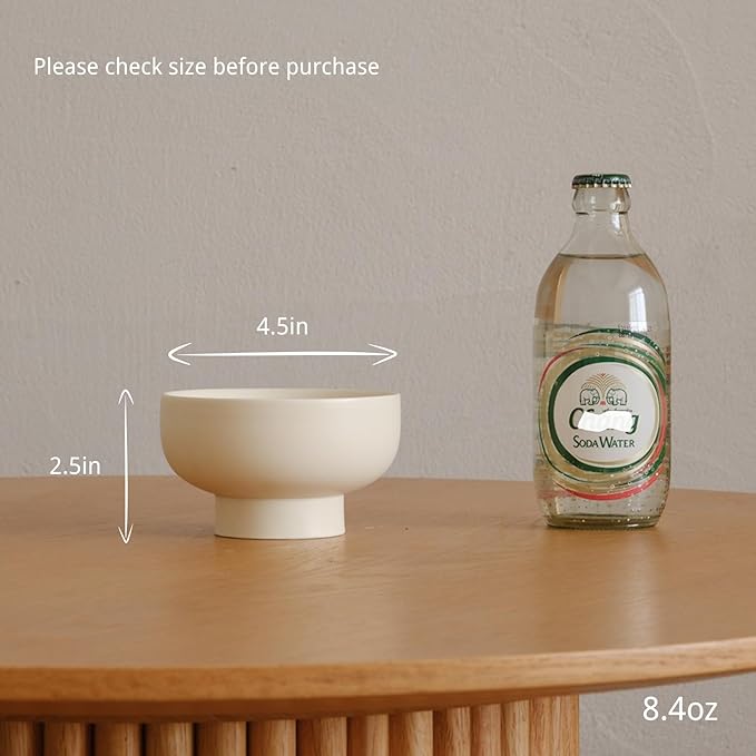 High-foot Fruit Bowl, Ceramic Pedestal Decorative Bowl, Round Bowl for Salad, H2.55" × W4.5" Small Size, 8.4oz, Matte Crème