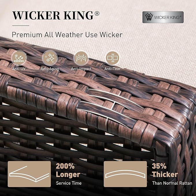 - WICKER KING RATTAN: The premium brown rattan has 100% UV protection and is reinforced on both rattan edges, which is 25% thicker than normal rattan and can prolong the service hours of the rattans. With this 100% handcrafted high quality rattan, this sofa couch set has great performance in all weather like rain, intense sun exposure, suit for year-round outdoor use