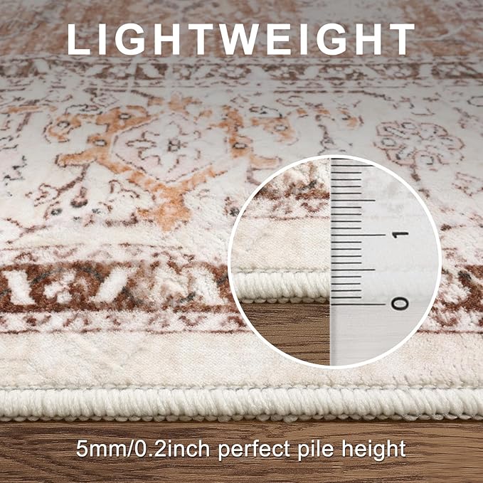 - SUPER SOFT&LOW PILE—Crafted from premium low-pile faux wool fibers, our washable area rugs 5x7 offer a luxurious feel with exceptional durability. Their velvety texture adds comfort to any space while effortlessly blending into your decor, and the 0.2" thick low pile neutral area rug makes them ideal for high-traffic areas without obstructing doorways.