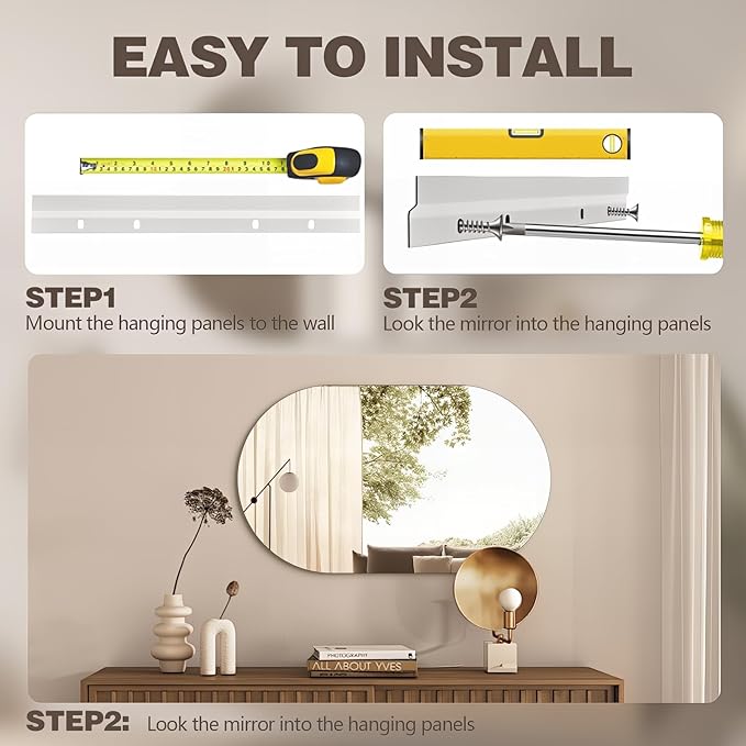 - 【Hanging Horizontally or Vertically】You can freely choose to hang these frameless mirrors horizontally or vertically according to the size of the space. Say goodbye to complicated setups, our frameless oval mirror can be securely and effortlessly installed in just a few minutes. Saving you time and effort and start enjoying your mirror sooner with easy and quick installation.