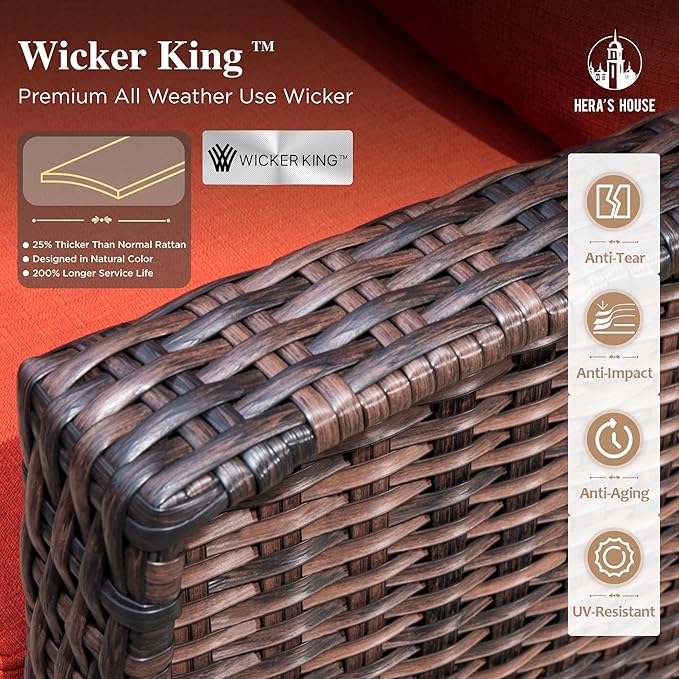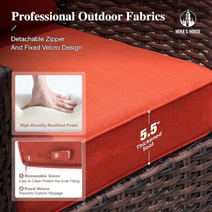 - 【All Weather Resistant Fabric】The outdoor patio furniture is crafted with high-quality, handwoven weather-resistant PE rattan. All cushion covers are made by CUSHION PRO technology to withstand any weather condition like rain, moisture, or intense sun exposure and can be easily removed with the zipper design. Anti soiling, waterproof, easy to maintain, UV resistant. Perfectly for year-round outdoor use