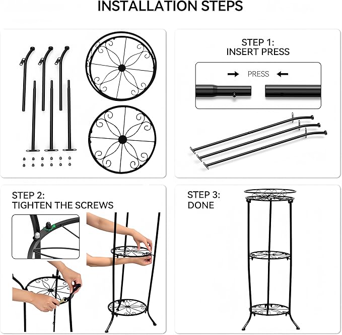 - 【Quick Installation】3-tier design saves space, plant stand indoor comes with a complete installation kit and clear instructions, easy to assemble, just 3-5 minutes to get a beautiful modern plant stand. The tiered indoor plant stand comes with feet to protect your floor, you can easily move this lightweight indoor plant corner plant stand without worrying about scratches on your floor.