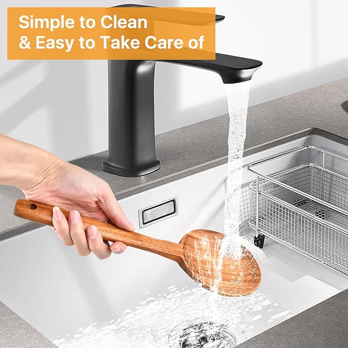 - USE & MAINTENANCE - These wood kitchen cooking spoons will not scratch pots and pans and are safe to use on non-stick cookware. We recommend rinsing with warm water after use, wiping off excess water with a rag, then drying in a ventilated area and occasionally applying mineral oil to maintain the best appearance and allow you to fully enjoy the cooking process