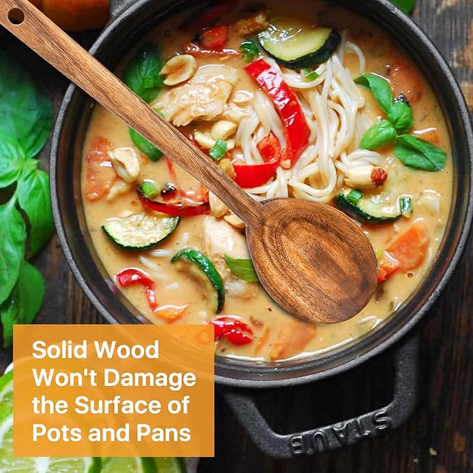 - PREMIUM OLIVE WOOD - Our wooden cooking spoons are molded from one piece of hardwood, which is a highly heat-resistant, sturdy, food-safe material that is not spliced, does not warp, is odorless, and ensures a long service life