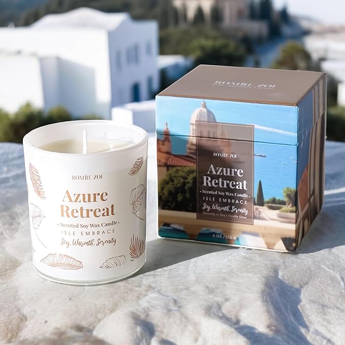 ROMIIE ZOI Tidal Treasure Scented Candle - Ocean Whisper - 6oz Soy Wax Candle for Home Scented, Stress Relief Candle Gifts for Women/Men