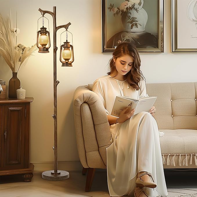 - Foot Stepless Dimming (0-100%): This rustic floor lamp provides 0-100% full stepless dimming, with soft and bright light, creating the atmosphere of a rustic wooden house. Easy to operate without bending over.