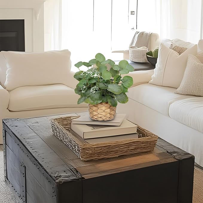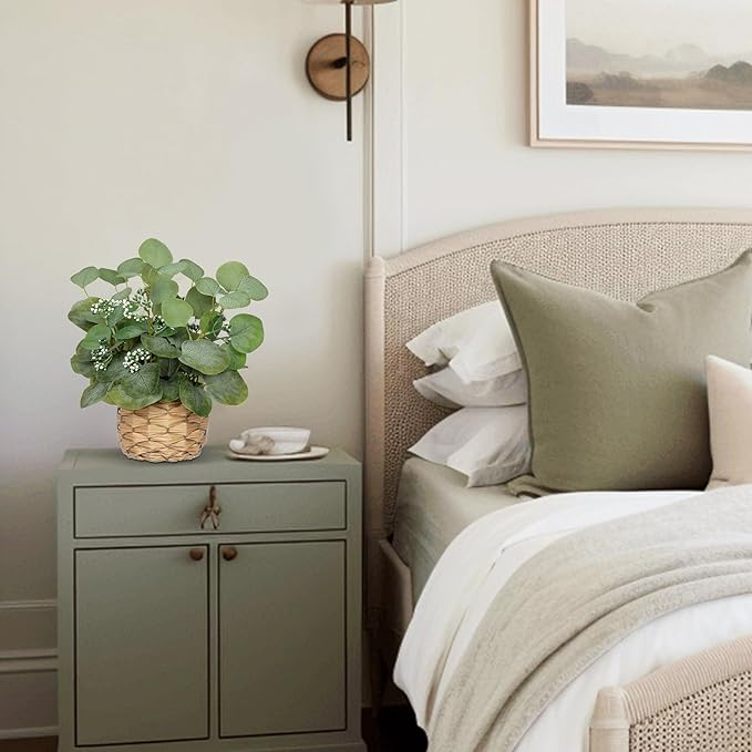- Long Lasting Retention: Artificial eucalyptus with seeds in natural woven planter pot make these fake plants more life-like and look more natural. These potted artificial eucalyptus are perfect to brighten up surroundings, such as faux plants indoors