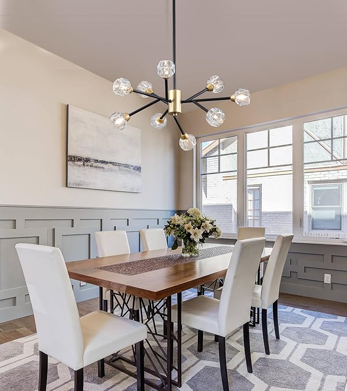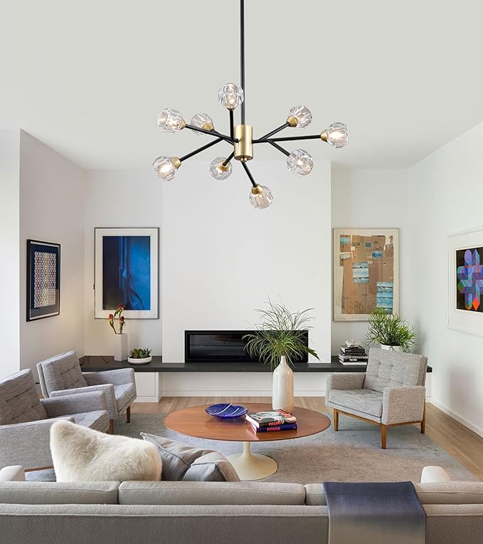 - WIDE APPLICATION: This sputnik modern glass chandelier combines classic and modern style,recommended for dining room chandeliers over table,also this crystal chandeliers can be used for living room, bedroom,kitchen island,entryway bar and etc.