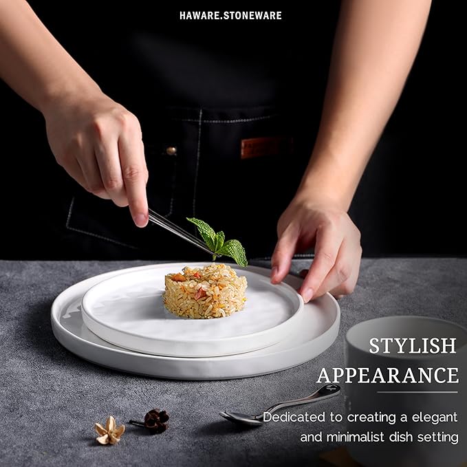 - 【PREMIUM STONEWARE】HaWare dinnerware set are made of high quality clay and glaze, NO LEAD, Non-toxic, Would not leach any harmful substance into your food or drink during using, High temperature fire-made production bring a thicker and stronger structure to the dishware, Sturdy and chip-resistant for long term heavy use, Also they are DISHWAHSERSAFE & MICROWAVE SAFE, Make cleaning and cooking a breeze