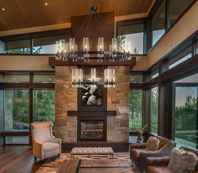 - 【Quality and Prompt After-sales Service】 Black round chandelier has passed UL certification. Farmhouse chandelier light fixtures lifetime warranty after receiving the goods have any doubts problems immediately. 【Versatile Style】Whether your interior design leans towards modern, vintage, or rustic, the YIOSI chandelier will complement your aesthetic perfectly.