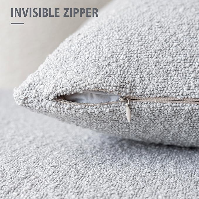 Foindtower Set of 2, Decorative Textured Boucle Throw Pillow Covers Accent Solid Pillow Cases Neutral Soft Cozy Couch Cushion Case for Chair Sofa Bedroom Living Room Home Decor 16 x 16 Inch Light Grey