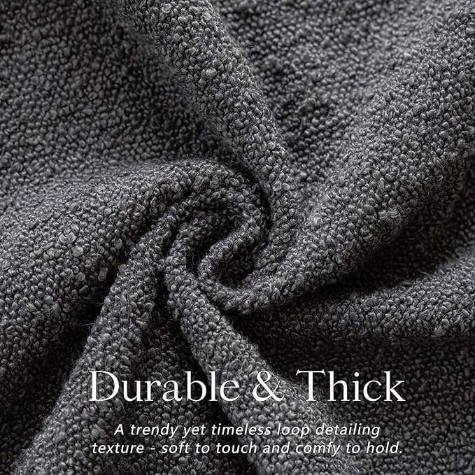 Foindtower Set of 2, Decorative Textured Boucle Throw Pillow Covers Accent Solid Pillow Cases Neutral Soft Cozy Couch Cushion Case for Chair Sofa Bedroom Living Room Home Decor 16 x 16 Inch Dark Grey