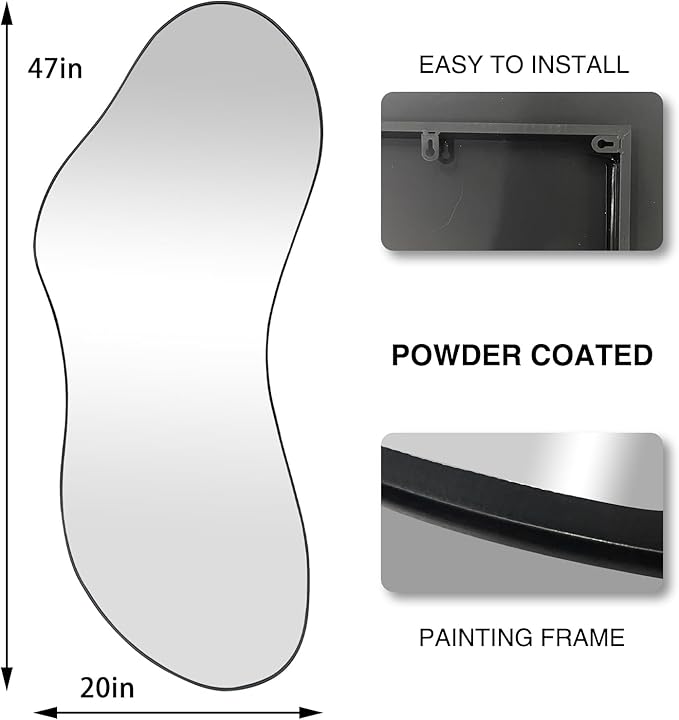 - Suitable Scene: The irregular mirror is suitable for various decoration styles and improves the overall taste of decoration. This wall mirror is a perfect home decoration for fireplace, living room, dining room, vanity, entryway and so on