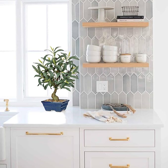 - Bonsai Pot: Planted in a 6.5 x 5.12 x 2.95 inches(16.5 x 13 x 7.5 cm) rectangular blue ceramic bonsai pot, this small olive tree countertop adds a unique aesthetic to modern, minimalist decor. The smooth blue glaze and pebble base give it a sophisticated and timeless appeal.