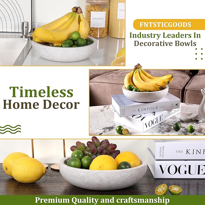- EACH BOWL IS UNIQUE - Our bowl is made of 100% solid travertine and every single product is a unique work of art. Elevate your home with this modern centerpiece bowl. Every bowl is handmade by an expert craftsman with a smooth white marble finish