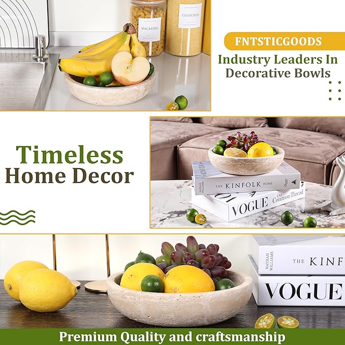 - MULTIPURPOSE BOWL - Our travertine bowl is extremely versatile. It can be used for anything from holding fruits, keys. or as a catch all bowl. Use it on any countertop as modern kitchen decor.
