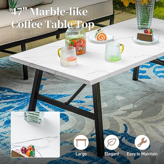 - UNIQUIE DETAILS: This outdoor furniture's diamond back design and marble-like metal table top make this outdoor furniture more unique and exquisite