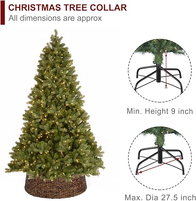 Christmas Tree Collar, 28’’ D Handmade Water Hyacinth Christmas Stand Tree Collar Basket Base Cover for Holiday Decoration